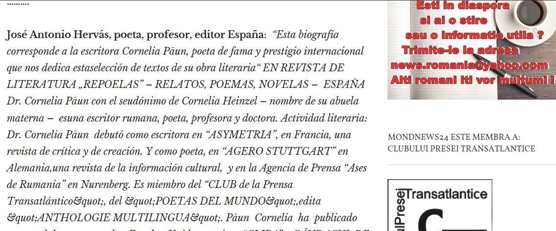 PROF.DR.CORNELIA PAUN éCRIVAINE DOCTEURCHRONIQUE PROF. DR.CORNELIA PAUN HEINZEL